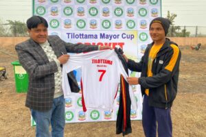 तिलोत्तमा । तिलोत्तमा नगरपालिकामा तिलोत्तमा मेयर कप टी ट्वान्टी क्रिकेट प्रतियोगिता शुरु भएको छ । नवजीवन क्लबको आयोजनामा प्रतियोगिता सुरु भएको हो । प्रतियोगिताको उद्घाटन खेलमा जित निकाल्दै वार्ड नम्बर १६ले विजयी सुरुवात गरेको छ । वार्ड नम्बर १६ले वार्ड नम्बर ८ लाई ६१ रनको फराकिलो अन्तरले पराजित गर्दै विजयी यात्रा सुरुवात गरेको हो ।